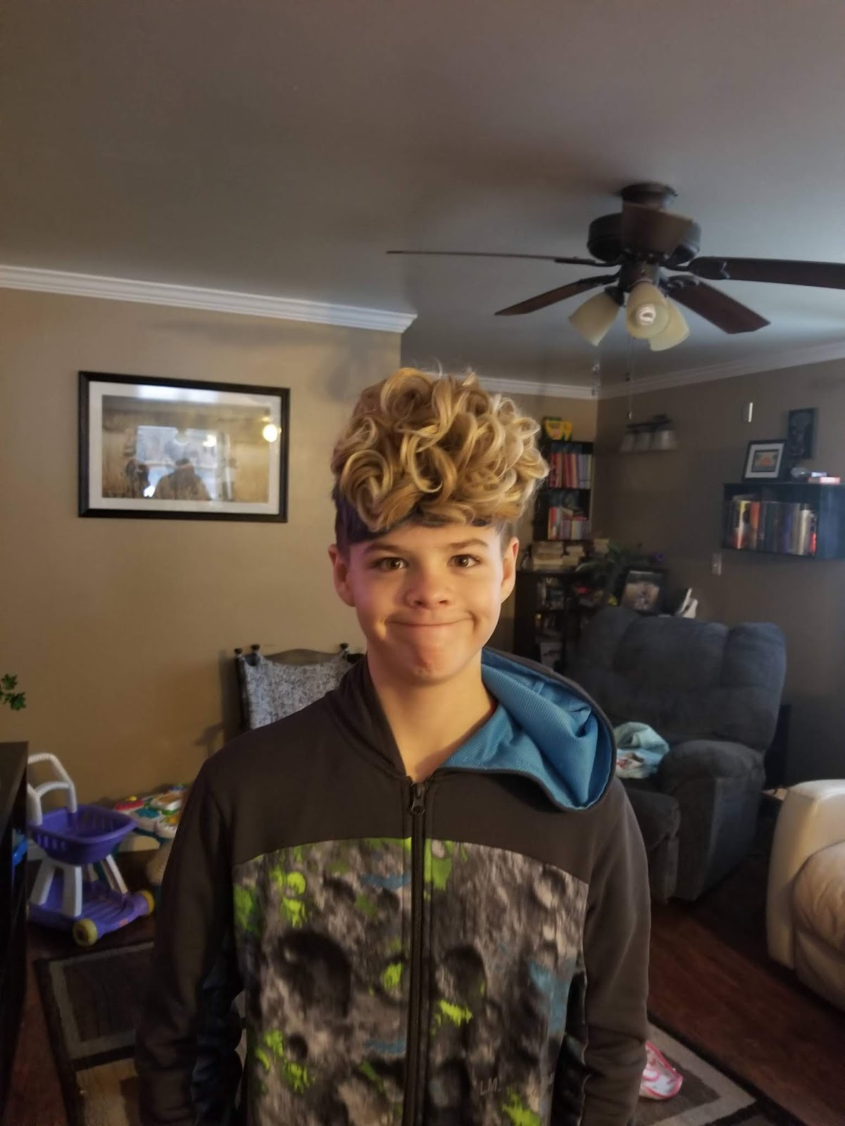 He is just a cute, creative kid! I love him so much! Of course, the next minute he presented wearing my hairpiece on the top of his head. What a dork!